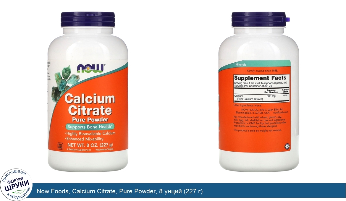 Друзья, если у вас есть отзыв/дополнение/комментарий/вопрос относительно Now Foods, Calcium Citrate, Pure Powder, 8 унций (227 г) - напишите его ответом в эту тему (это будет полезно всему сообществу в целом и вам в отдельности).