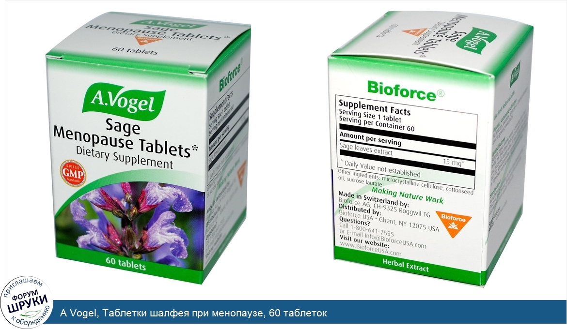 A Vogel, Таблетки шалфея при менопаузе, 60 таблеток