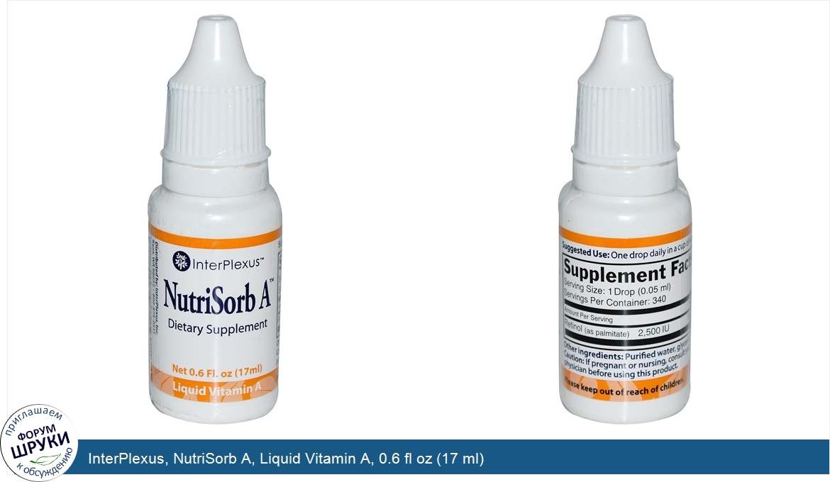Друзья, если у вас есть отзыв/дополнение/комментарий/вопрос относительно InterPlexus, NutriSorb A, Liquid Vitamin A, 0.6 fl oz (17 ml) - напишите его ответом в эту тему (это будет полезно всему сообществу в целом и вам в отдельности).