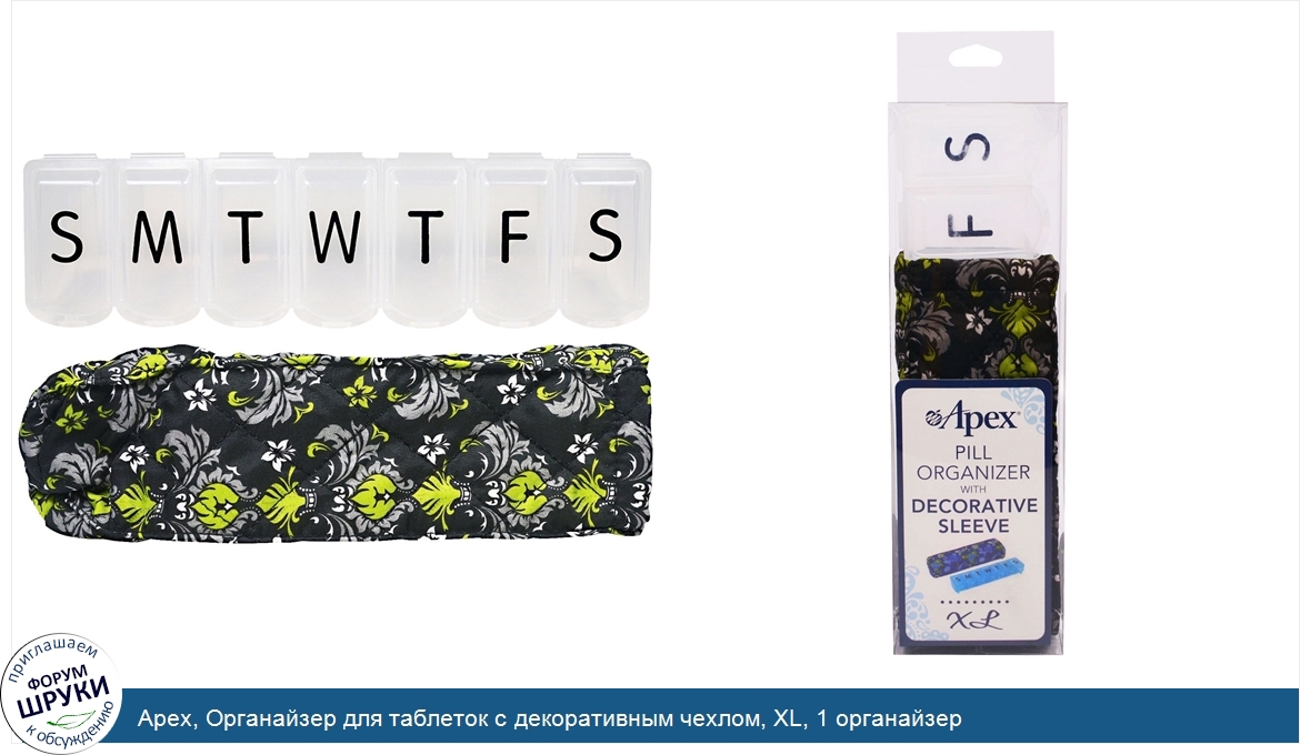 Apex, Органайзер для таблеток с декоративным чехлом, XL, 1 органайзер