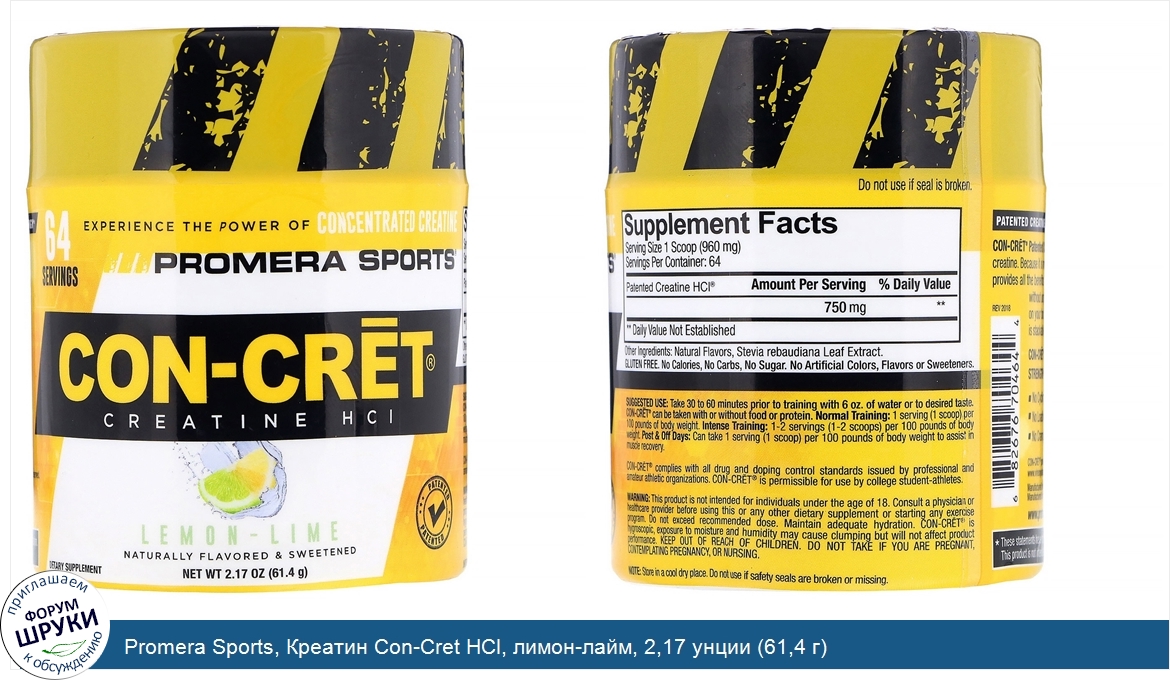 Друзья, если у вас есть отзыв/дополнение/комментарий/вопрос относительно Promera Sports, Креатин Con-Cret HCl, лимон-лайм, 2,17 унции (61,4 г) - напишите его ответом в эту тему (это будет полезно всему сообществу в целом и вам в отдельности).