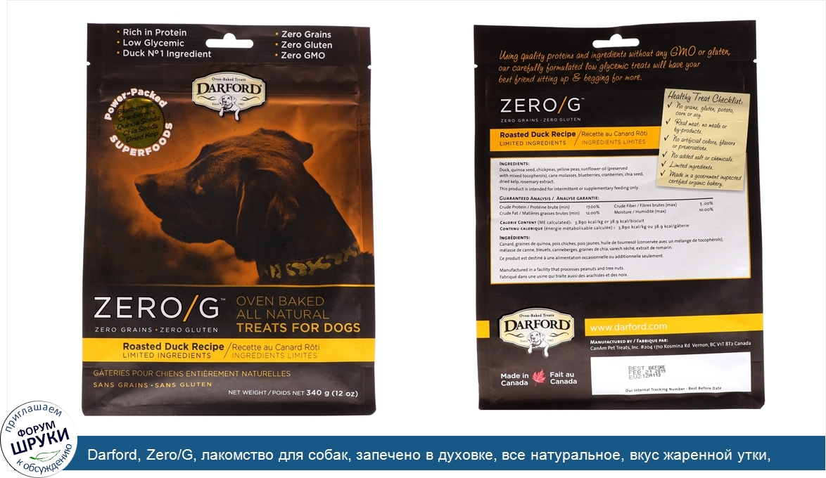 Darford, Zero/G, лакомство для собак, запечено в духовке, все натуральное, вкус жаренной утки, 12 унц. (340 г)