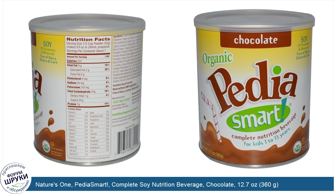 Друзья, если у вас есть отзыв/дополнение/комментарий/вопрос относительно Nature's One, PediaSmart!, Complete Soy Nutrition Beverage, Chocolate, 12.7 oz (360 g) - напишите его ответом в эту тему (это будет полезно всему сообществу в целом и вам в отдельности).