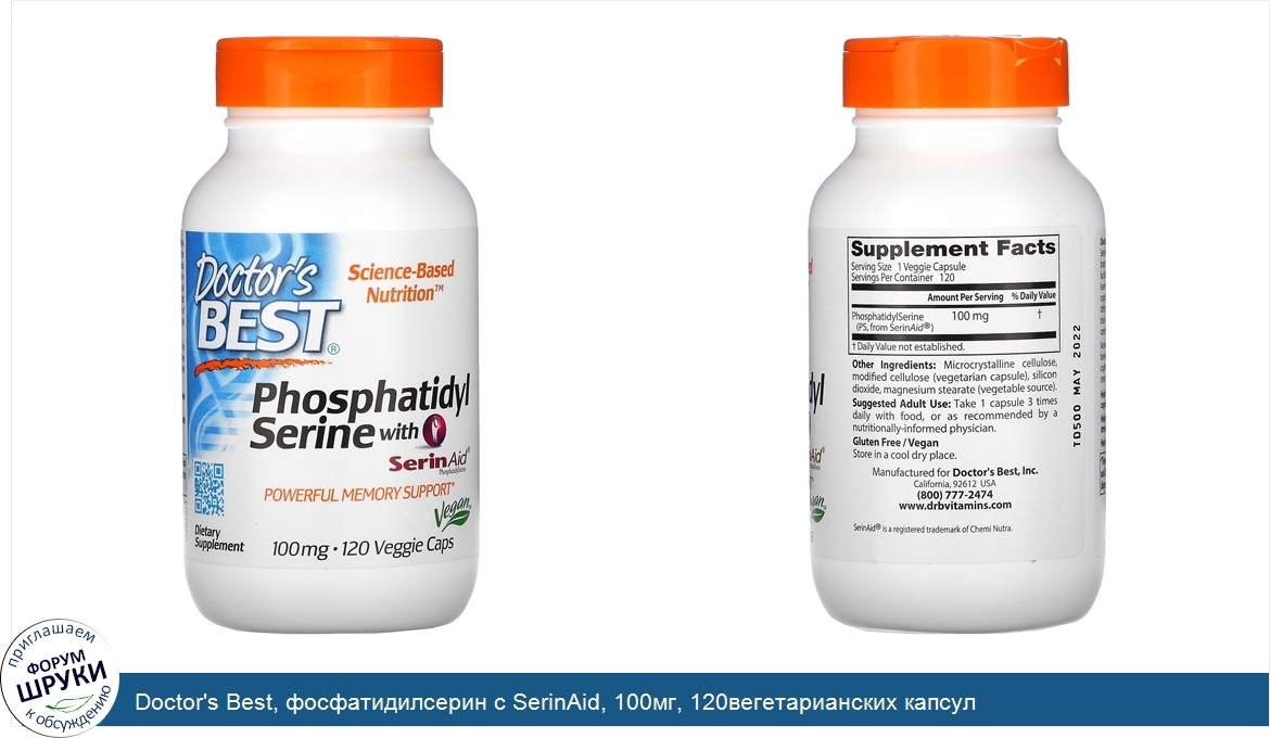 Друзья, если у вас есть отзыв/дополнение/комментарий/вопрос относительно Doctor's Best, фосфатидилсерин с SerinAid, 100мг, 120вегетарианских капсул - напишите его ответом в эту тему (это будет полезно всему сообществу в целом и вам в отдельности).