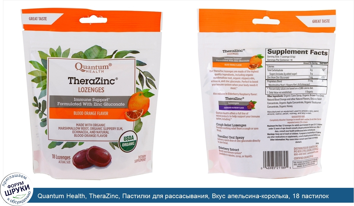 Друзья, если у вас есть отзыв/дополнение/комментарий/вопрос относительно Quantum Health, TheraZinc, Пастилки для рассасывания, Вкус апельсина-королька, 18 пастилок - напишите его ответом в эту тему (это будет полезно всему сообществу в целом и вам в отдельности).