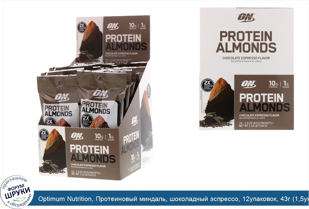 Optimum Nutrition, Протеиновый миндаль, шоколадный эспрессо, 12упаковок, 43г (1,5унции) каждый