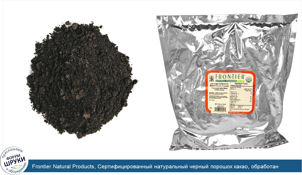 ru Frontier Natural Products, Сертифицированный натуральный черный порошок какао, обработан щелочью, 16 унций (453 г)