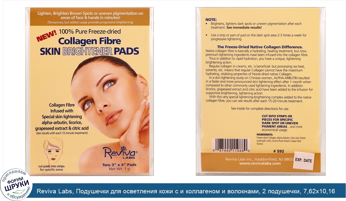 Друзья, если у вас есть отзыв/дополнение/комментарий/вопрос относительно Reviva Labs, Подушечки для осветления кожи с и коллагеном и волокнами, 2 подушечки, 7,62x10,16 см каждая - напишите его ответом в эту тему (это будет полезно всему сообществу в целом и вам в отдельности).