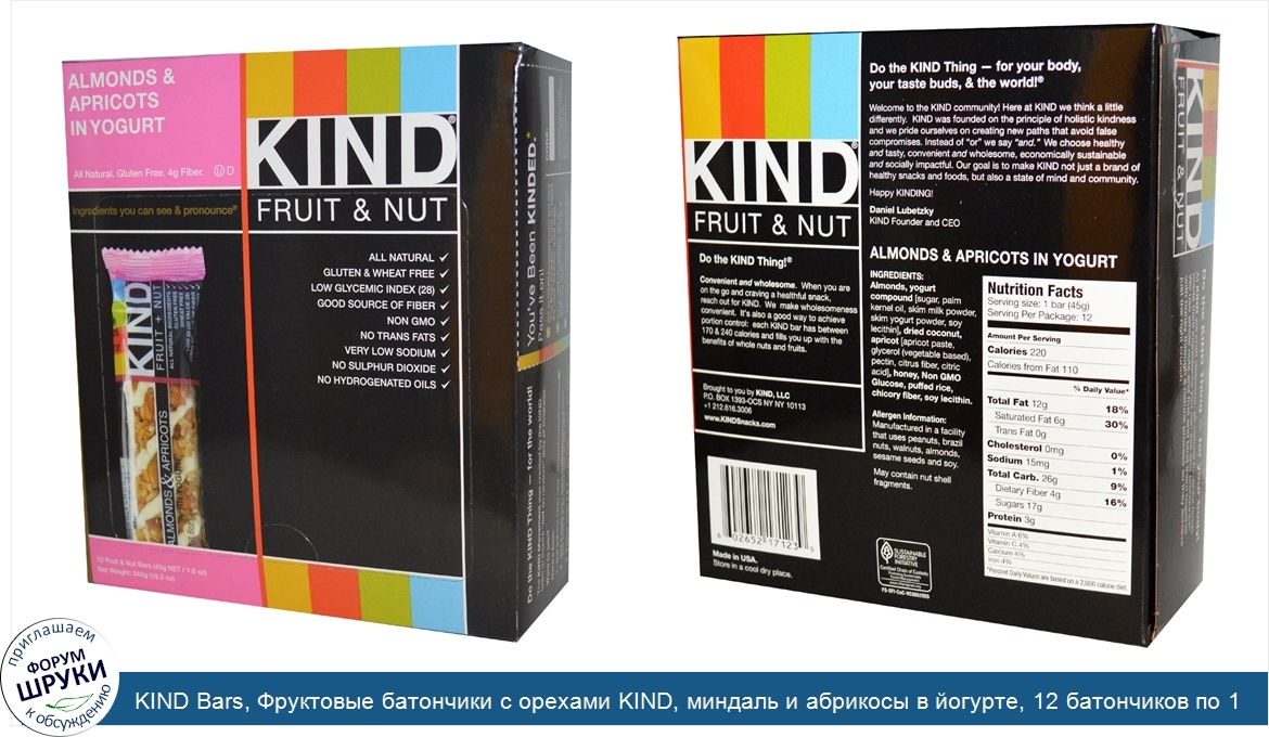 Друзья, если у вас есть отзыв/дополнение/комментарий/вопрос относительно KIND Bars, Фруктовые батончики с орехами KIND, миндаль и абрикосы в йогурте, 12 батончиков по 1,6 унции (45 г) каждый - напишите его ответом в эту тему (это будет полезно всему сообществу в целом и вам в отдельности).