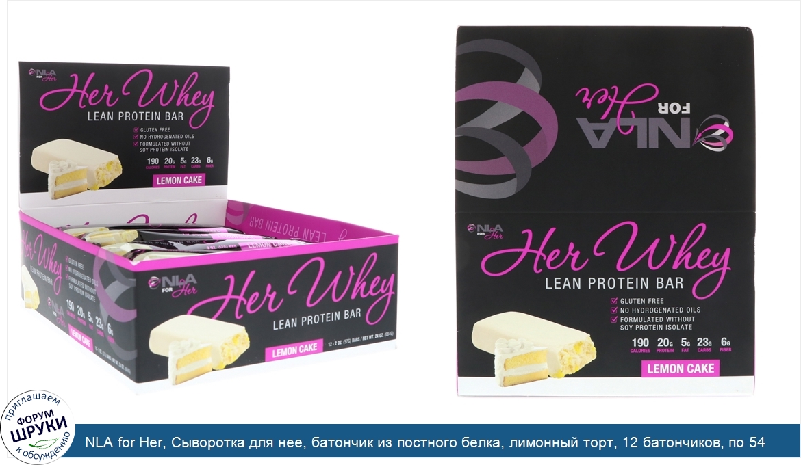 ru NLA for Her, Сыворотка для нее, батончик из постного белка, лимонный торт, 12 батончиков, по 54 г каждый