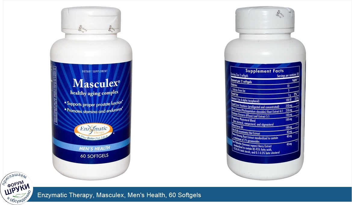 Друзья, если у вас есть отзыв/дополнение/комментарий/вопрос относительно Enzymatic Therapy, Masculex, Men's Health, 60 Softgels - напишите его ответом в эту тему (это будет полезно всему сообществу в целом и вам в отдельности).