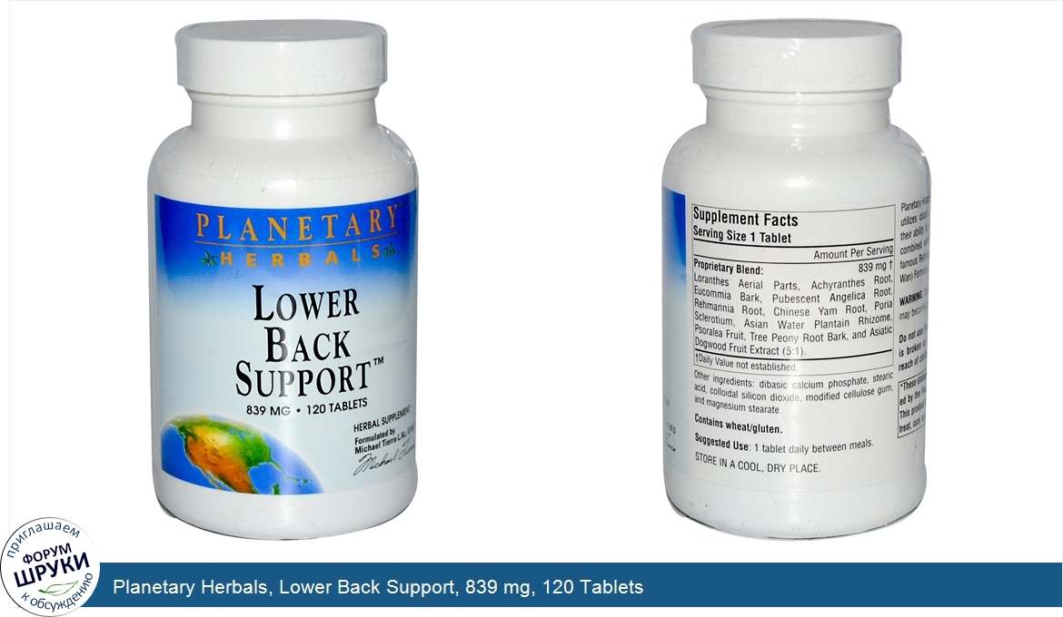 Herbal Supplement. Formulated by Michael Tierra L.Ac, O.M.D. Planetary Herbals Lower Back Support utilizes classic Chinese herbs known for their ability to support the back. These are combined with the primary he...