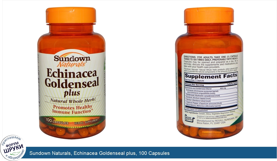 Друзья, если у вас есть отзыв/дополнение/комментарий/вопрос относительно Sundown Naturals, Echinacea Goldenseal plus, 100 Capsules - напишите его ответом в эту тему (это будет полезно всему сообществу в целом и вам в отдельности).