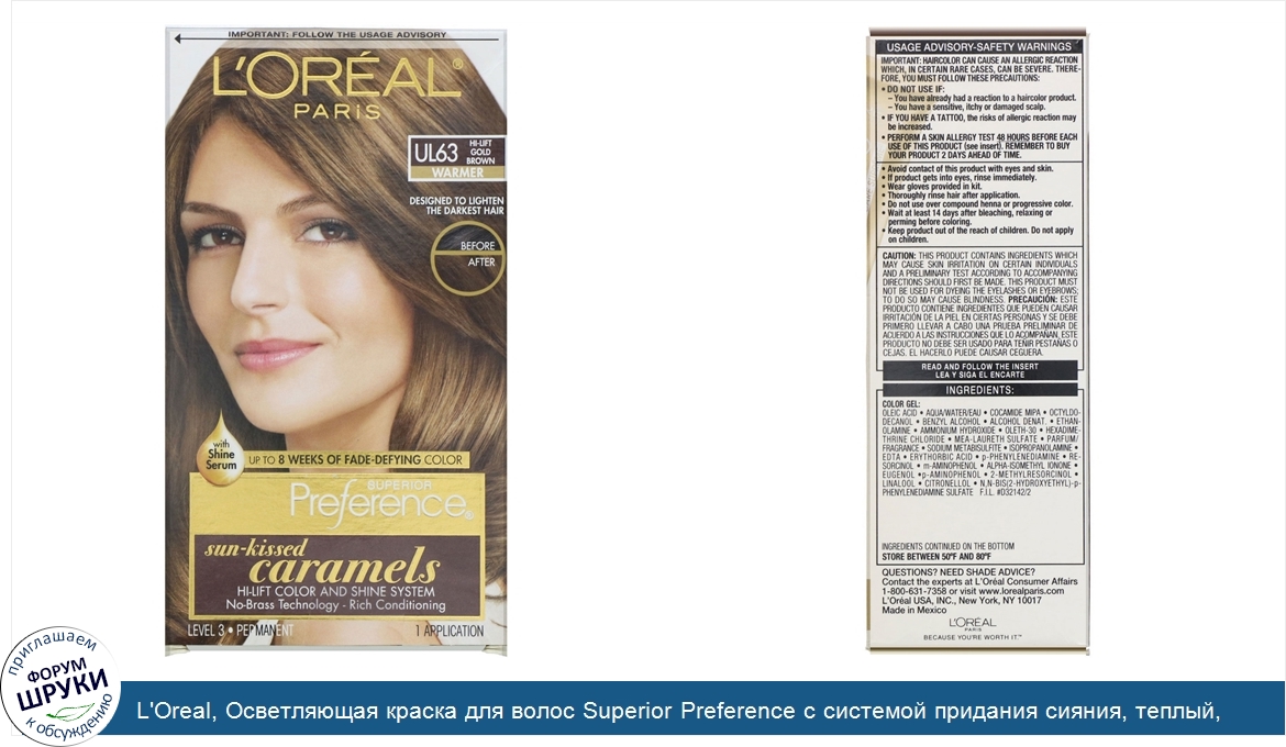 Друзья, если у вас есть отзыв/дополнение/комментарий/вопрос относительно L'Oreal, Осветляющая краска для волос Superior Preference с системой придания сияния, теплый, осветленный золотисто-коричневый UL63, на 1применение - напишите его ответом в эту тему (это будет полезно всему сообществу в целом и вам в отдельности).