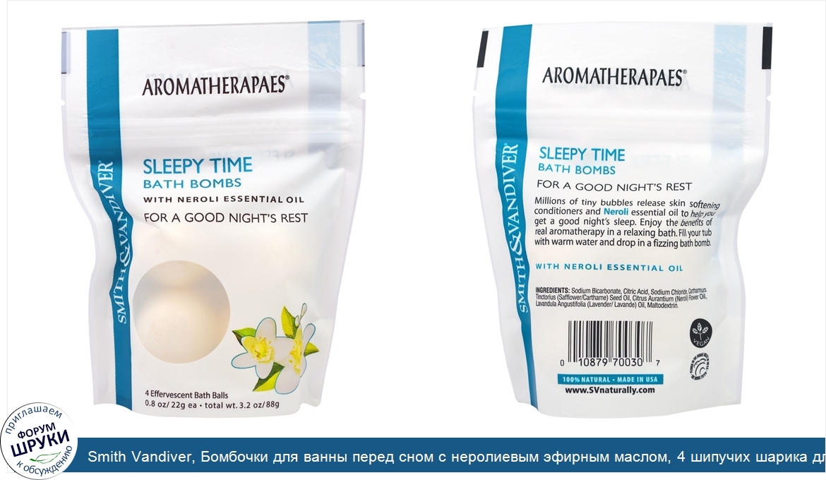 Друзья, если у вас есть отзыв/дополнение/комментарий/вопрос относительно Smith Vandiver, Бомбочки для ванны перед сном с неролиевым эфирным маслом, 4 шипучих шарика для ванны по 0,8 унции (22 г) - напишите его ответом в эту тему (это будет полезно всему сообществу в целом и вам в отдельности).