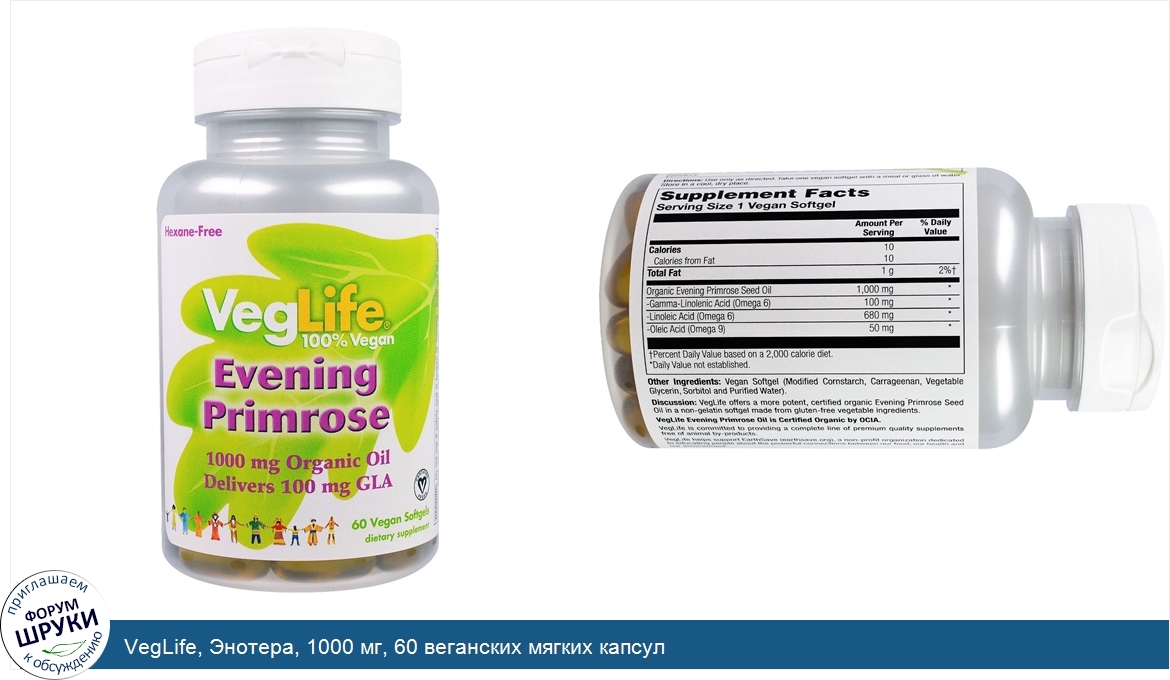 VegLife, Энотера, 1000 мг, 60 веганских мягких капсул