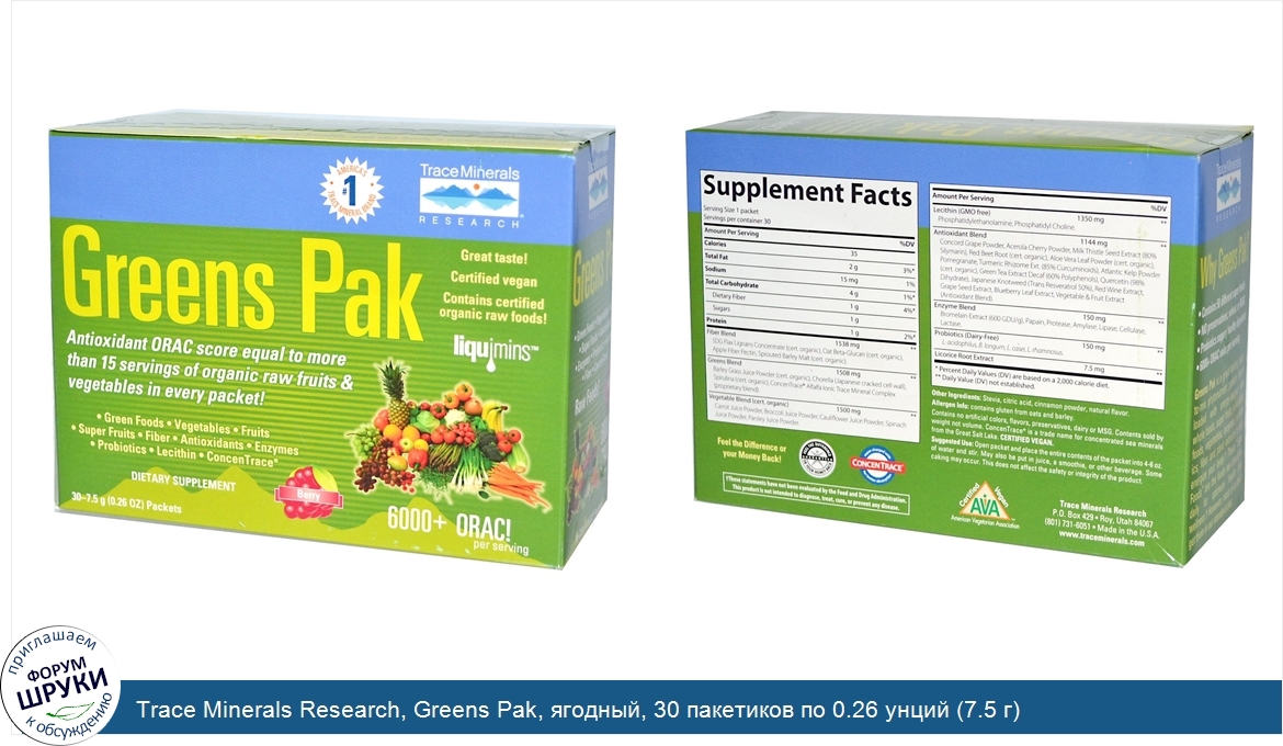 Друзья, если у вас есть отзыв/дополнение/комментарий/вопрос относительно Trace Minerals Research, Greens Pak, ягодный, 30 пакетиков по 0.26 унций (7.5 г) - напишите его ответом в эту тему (это будет полезно всему сообществу в целом и вам в отдельности).