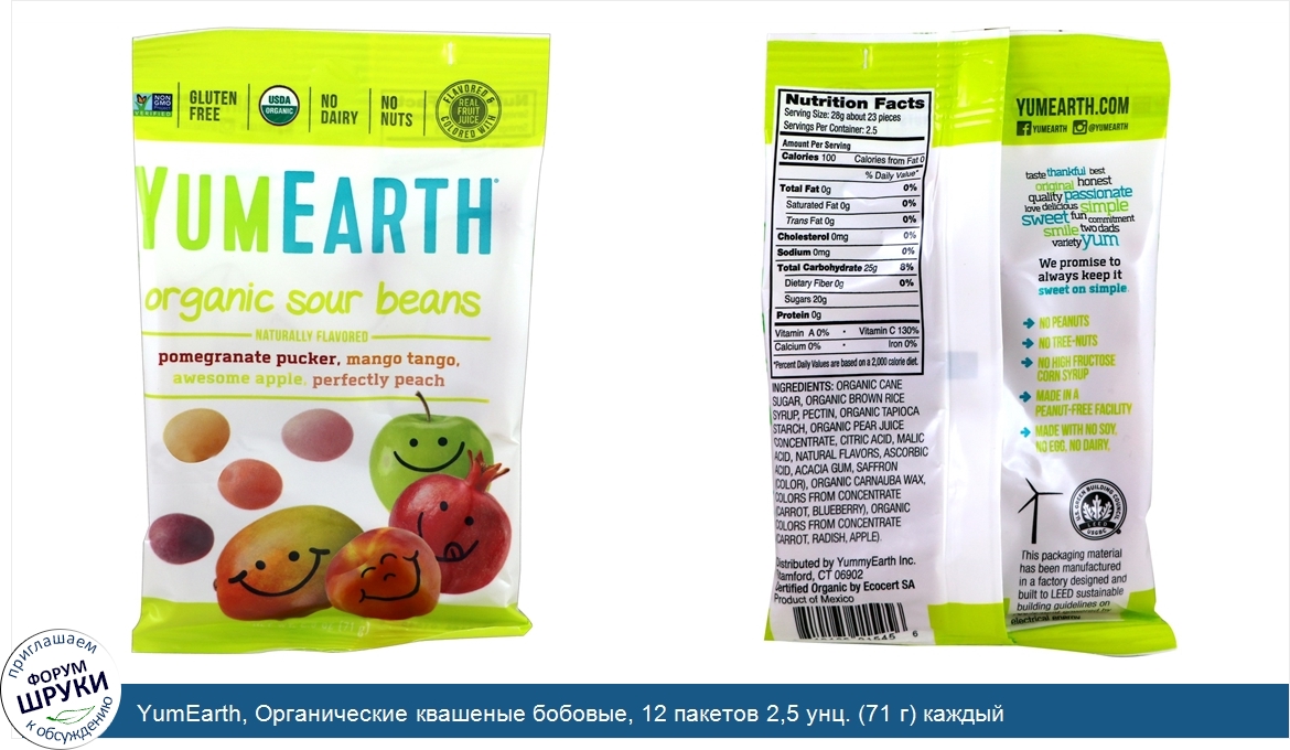 ru YumEarth, Органические квашеные бобовые, 12 пакетов 2,5 унц. (71 г) каждый