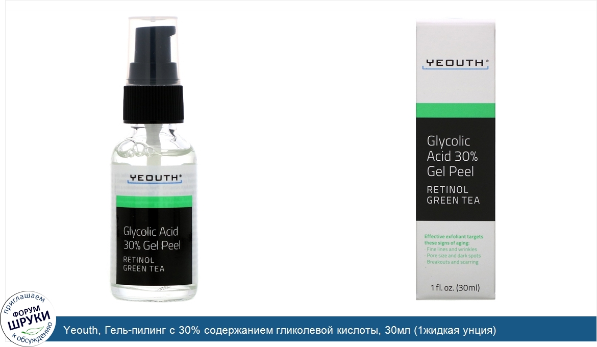 Yeouth, Гель-пилинг с 30% содержанием гликолевой кислоты, 30мл (1жидкая унция)