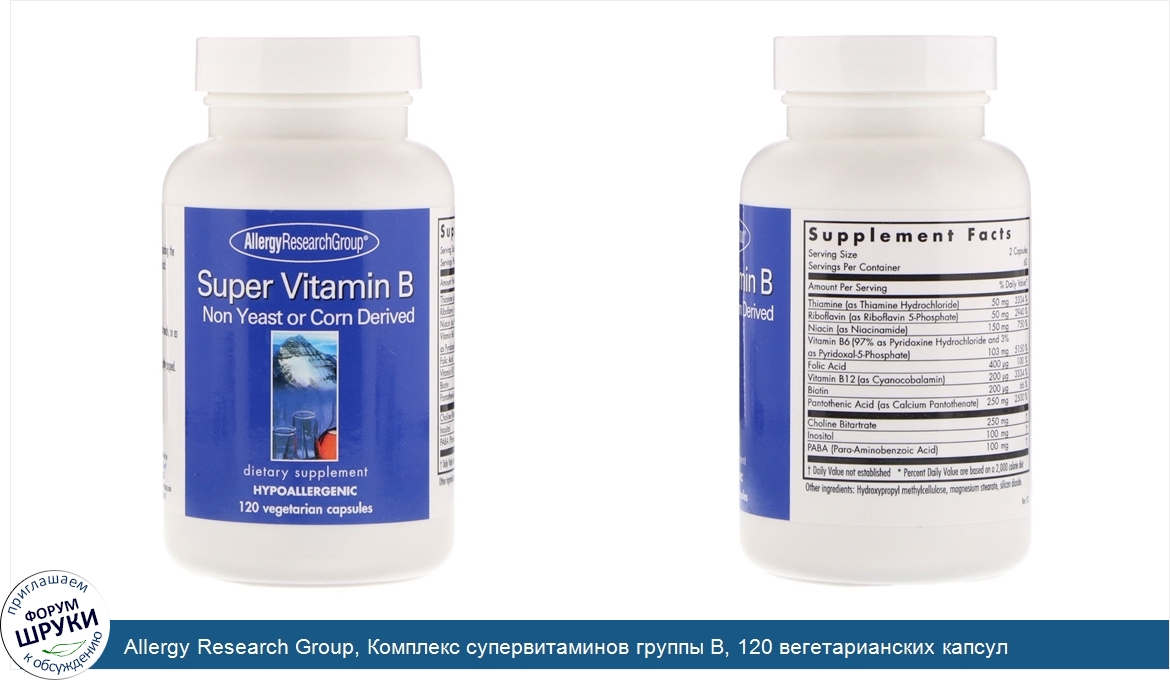 Друзья, если у вас есть отзыв/дополнение/комментарий/вопрос относительно Allergy Research Group, Комплекс супервитаминов группы B, 120 вегетарианских капсул - напишите его ответом в эту тему (это будет полезно всему сообществу в целом и вам в отдельности).