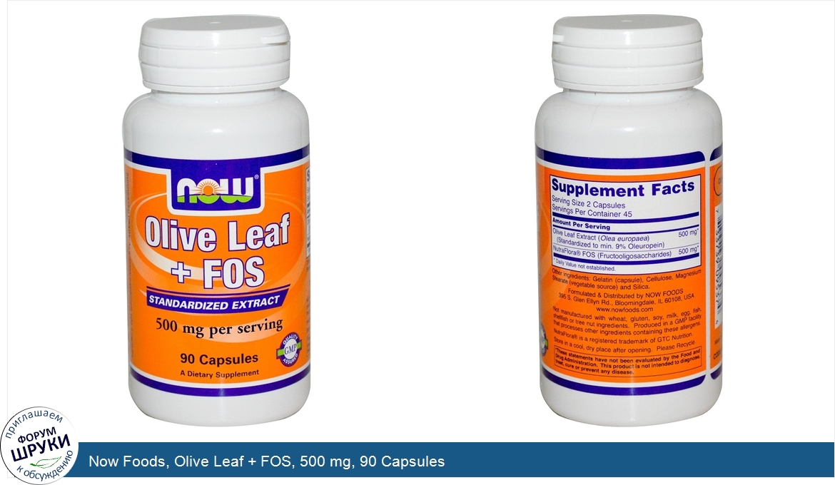 Now Foods, Olive Leaf + FOS, 500 mg, 90 Capsules