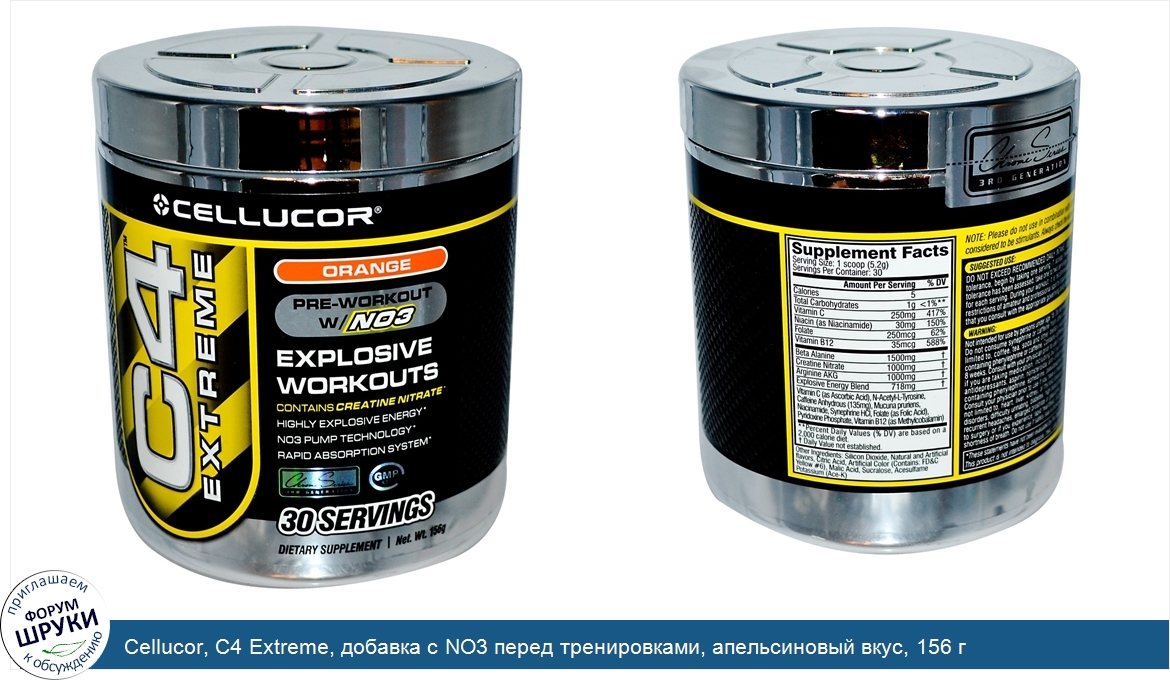 Друзья, если у вас есть отзыв/дополнение/комментарий/вопрос относительно Cellucor, C4 Extreme, добавка с NO3 перед тренировками, апельсиновый вкус, 156 г - напишите его ответом в эту тему (это будет полезно всему сообществу в целом и вам в отдельности).