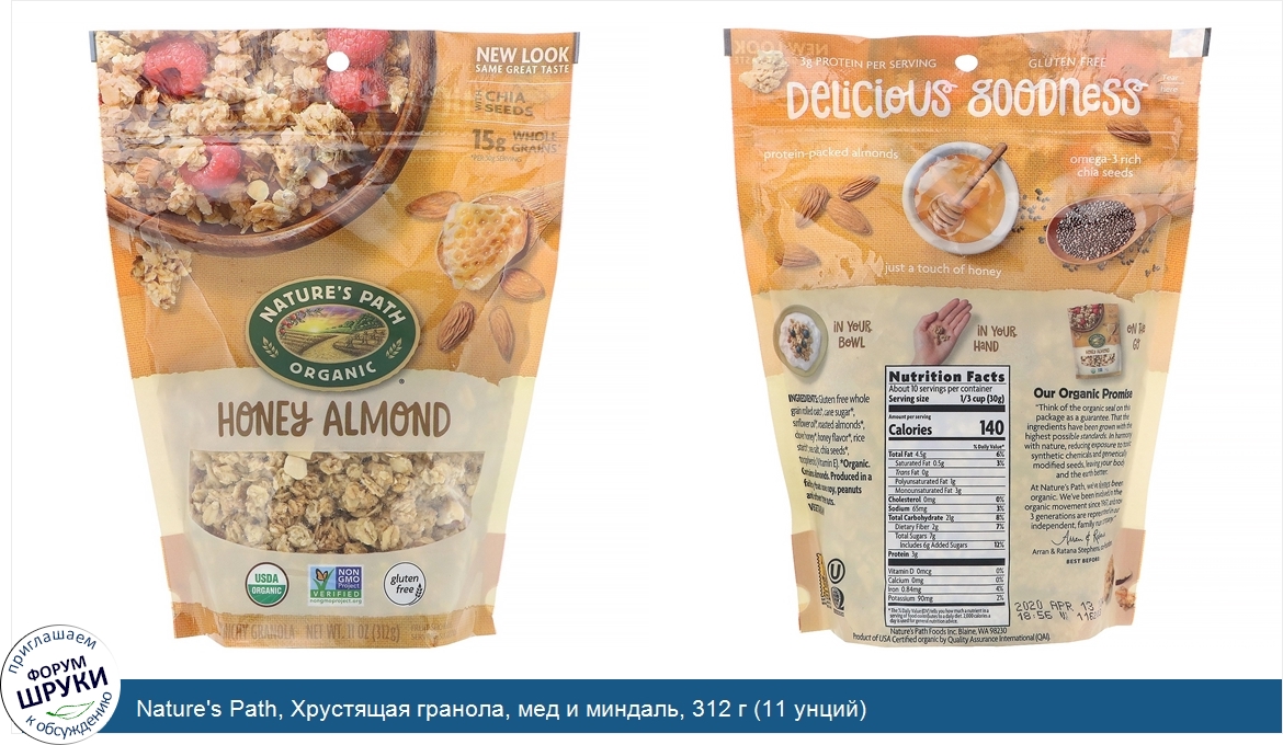Друзья, если у вас есть отзыв/дополнение/комментарий/вопрос относительно Nature's Path, Хрустящая гранола, мед и миндаль, 312 г (11 унций) - напишите его ответом в эту тему (это будет полезно всему сообществу в целом и вам в отдельности).