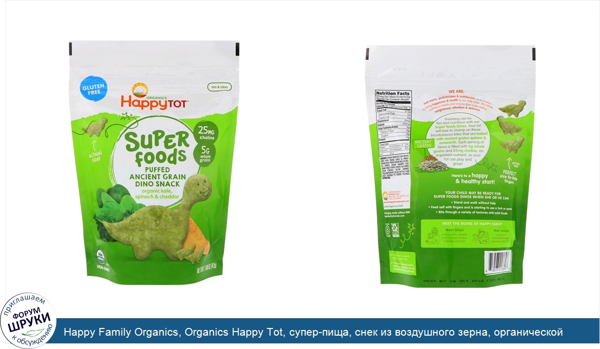 Друзья, если у вас есть отзыв/дополнение/комментарий/вопрос относительно Happy Family Organics, Organics Happy Tot, супер-пища, снек из воздушного зерна, органической капусты, шпината, чеддера, 1,48 унц. (42 г) - напишите его ответом в эту тему (это будет полезно всему сообществу в целом и вам в отдельности).