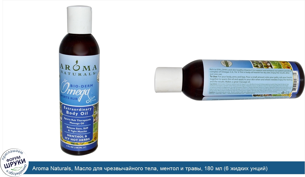[DESCRIPT]Also Sample Bottle, 1 fl oz (30ml) . Truth in Labeling Pledge - Natural Ingredient Resource Center. 100% Natural Ingredients. Bio-Derm Omega 3, 6, 7, 9 Sports Rub. Sports Rub Therapeutic Massage Oil. Relaxes Sore, Stiff Tight Muscles. Aroma Naturals amazing all natural beauty oil with Omegas 3, 6, 7 9 for your body, arms and legs. The complex blend of fragrant Aromatherapy Essential Oils and Vitamin Rich Oils with Vitamins A, C E improves the health of your skin from the very first use. It is light, delicate, nourishing, absorbs fast and is never greasy. Great for all over massage, or add a few drops in the bath. Also great as an all over moisturizer after the shower or bath. Rich in EFAs, DHAs and skin healthy Vitamin E to support and enhance our patent pending complex of Omegas 3, 6, 7 9. This is beauty oil heaven for dry skin. Enjoy the results after just one use.[/DESCRIPT]... (описание дополняется)