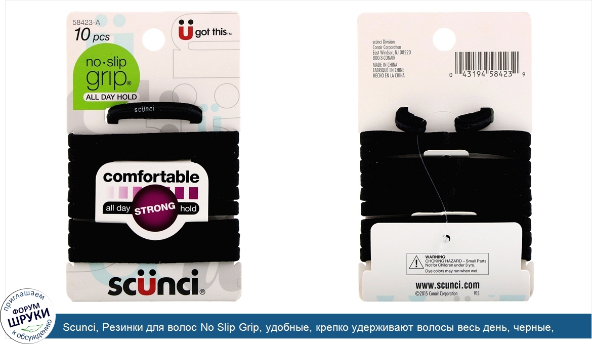Друзья, если у вас есть отзыв/дополнение/комментарий/вопрос относительно Scunci, Резинки для волос No Slip Grip, удобные, крепко удерживают волосы весь день, черные, 10штук - напишите его ответом в эту тему (это будет полезно всему сообществу в целом и вам в отдельности).