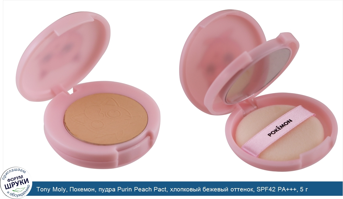 Друзья, если у вас есть отзыв/дополнение/комментарий/вопрос относительно Tony Moly, Покемон, пудра Purin Peach Pact, хлопковый бежевый оттенок, SPF42 PA+++, 5 г - напишите его ответом в эту тему (это будет полезно всему сообществу в целом и вам в отдельности).