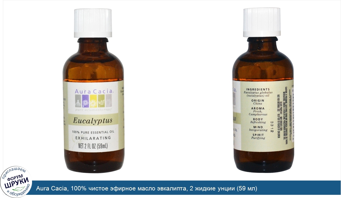 Aura Cacia, 100% чистое эфирное масло эвкалипта, 2 жидкие унции (59 мл)
