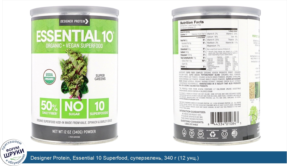 Друзья, если у вас есть отзыв/дополнение/комментарий/вопрос относительно Designer Protein, Essential 10 Superfood, суперзелень, 340 г (12 унц.) - напишите его ответом в эту тему (это будет полезно всему сообществу в целом и вам в отдельности).