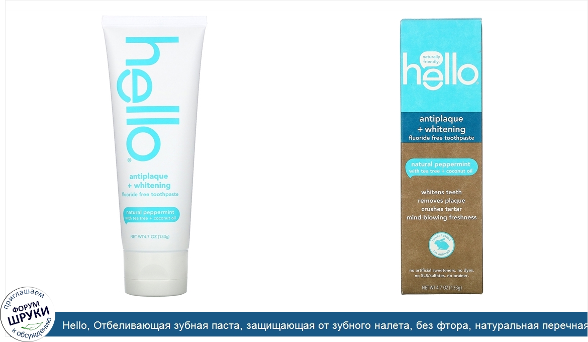Друзья, если у вас есть отзыв/дополнение/комментарий/вопрос относительно Hello, Отбеливающая зубная паста, защищающая от зубного налета, без фтора, натуральная перечная мята, 133г - напишите его ответом в эту тему (это будет полезно всему сообществу в целом и вам в отдельности).