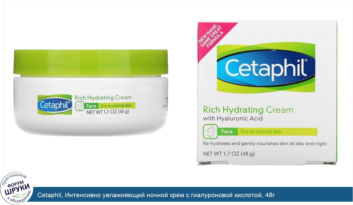 Cetaphil, Интенсивно увлажняющий ночной крем с гиалуроновой кислотой, 48г