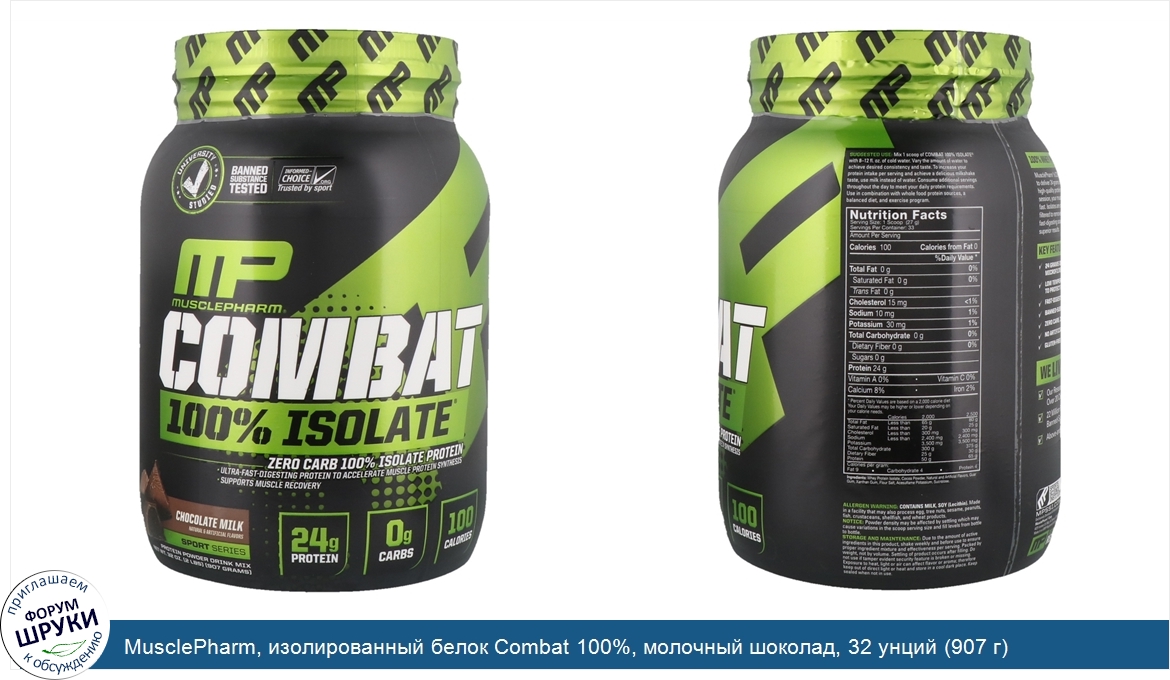 [DESCRIPT]Эффективность. Рост мышечной массы. Силы. Быстро усваиваемый белок. Натуральные и искусственные ароматизаторы. Спортивная серия. Протеиновый коктейль. Результат научных разработок. Подтверждено отсутствие запрещенных веществ. Informed Choice.org – спортсмены доверяют! . 100% изолированный белок без углеводов. Сверхбыстроусваиваемый белок для ускорения синтеза протеинов в мышцах. Способствует восстановлению мышц. 24 г белка. 0 г углеводов. 100 калорий. Произведено в соответствии с зарегистрированным стандартом cGMP. Для настоящих спортсменов. Настоящая наука. 100% изолированный сывороточный белок без углеводов! Изолированный белок MusclePharm Combat 100% разработан учеными и содержит 24 грамма 100% изолированного сывороточного белка в каждой порции массой 27 грамм ― это высококачественный белок без наполнителей. После интенсивной тренировки ваши мышцы теряют большое количество нутриентов и им необходимо быстро их восполнить. Изолированная форма является источником наиболее чистого белка, из которого научными методами удалены жиры, сахара и углеводы, благодаря чему он представляет собой источник быстроусваиваемого белка и идеальное решение, способствующее достижению лучших результатов. Основные характеристики. 24 грамма изолята сывороточного белка, микрофильтрованного методом перекрестного тока. Низкотемпературная микрофильтрация, сохраняющая белок. Быстро усваивается и вкусно. Проверено на отсутствие запрещенных веществ. Без углеводов, жиров и сахаров. Без искусственных красителей. Не содержит глютена. Мы этим живем. Мы это доказываем. Наши исследователи и врачи выполнили более 20 клинических, университетских и независимых исследований. 22 миллиона единиц готовой продукции получило сертификат "Проверено на запрещенные вещества программой Informed-Choice". Наша продукция превосходит все стандарты индустрии.[/DESCRIPT]... (описание дополняется)