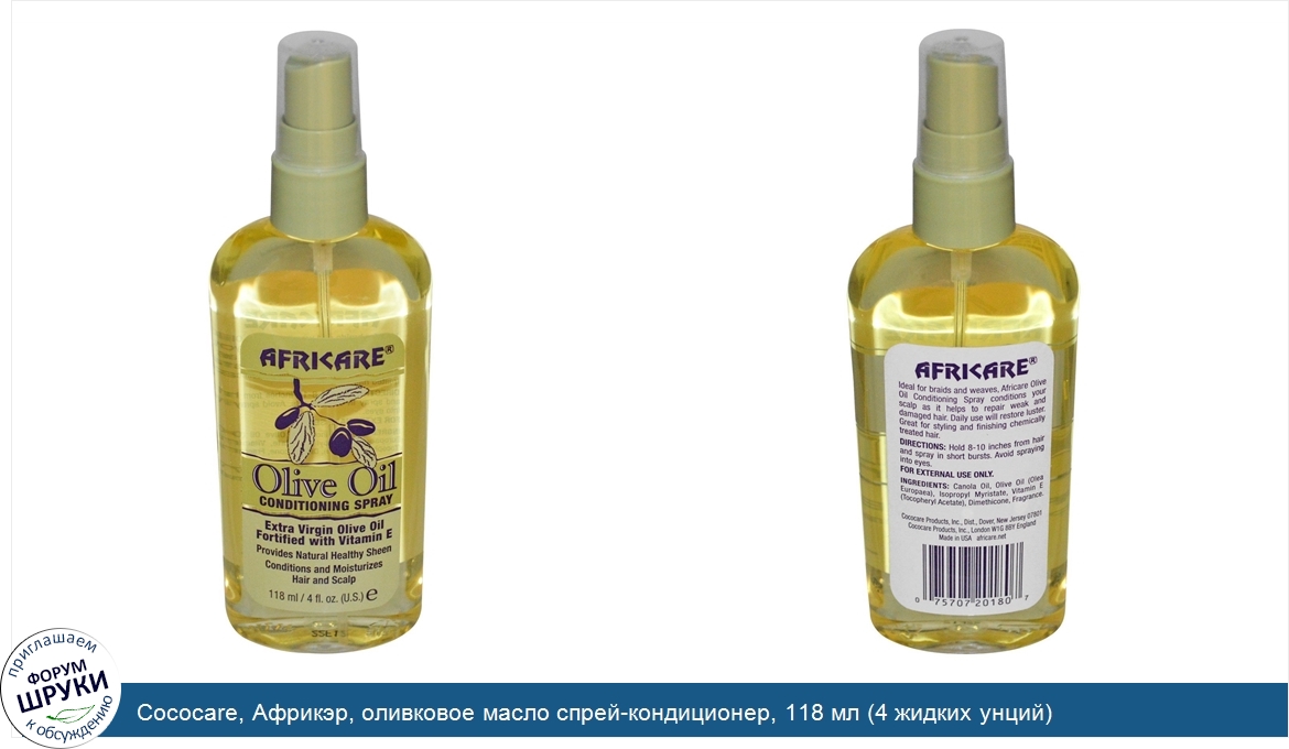 Друзья, если у вас есть отзыв/дополнение/комментарий/вопрос относительно Cococare, Африкэр, оливковое масло спрей-кондиционер, 118 мл (4 жидких унций) - напишите его ответом в эту тему (это будет полезно всему сообществу в целом и вам в отдельности).