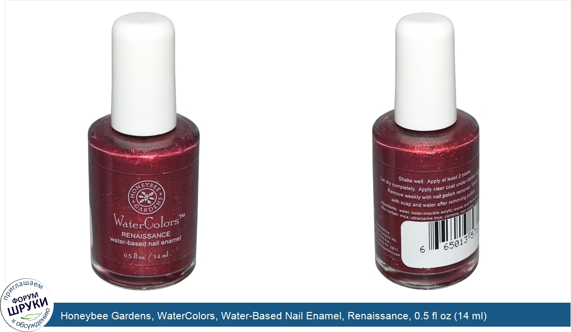 Друзья, если у вас есть отзыв/дополнение/комментарий/вопрос относительно Honeybee Gardens, WaterColors, Water-Based Nail Enamel, Renaissance, 0.5 fl oz (14 ml) - напишите его ответом в эту тему (это будет полезно всему сообществу в целом и вам в отдельности).