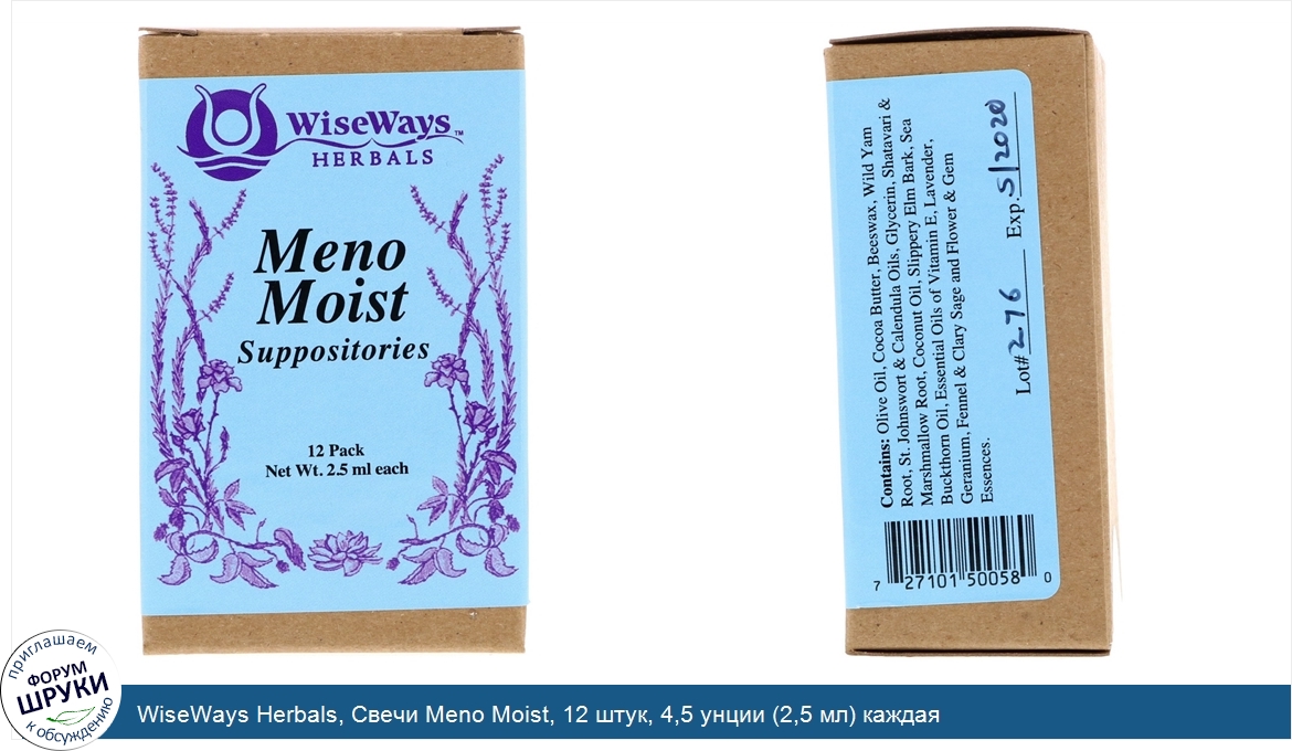 WiseWays Herbals, Свечи Meno Moist, 12 штук, 4,5 унции (2,5 мл) каждая