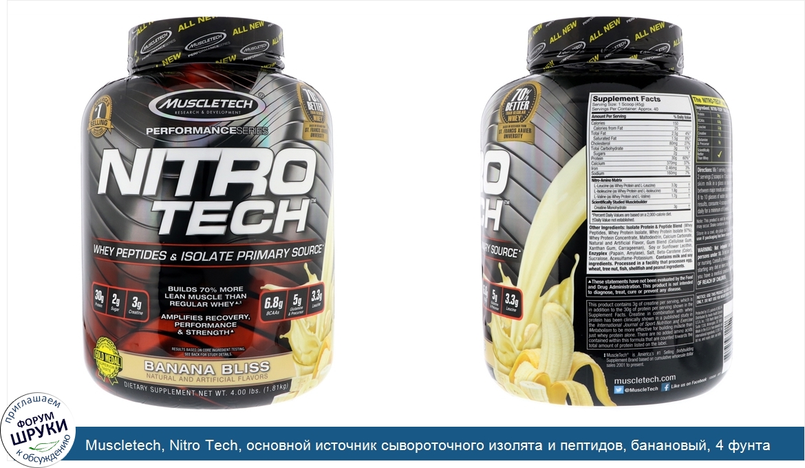 Друзья, если у вас есть отзыв/дополнение/комментарий/вопрос относительно Muscletech, Nitro Tech, основной источник сывороточного изолята и пептидов, банановый, 4 фунта (1,81 кг) - напишите его ответом в эту тему (это будет полезно всему сообществу в целом и вам в отдельности).