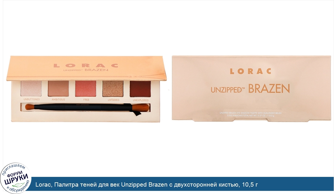 Друзья, если у вас есть отзыв/дополнение/комментарий/вопрос относительно Lorac, Палитра теней для век Unzipped Brazen с двухсторонней кистью, 10,5 г - напишите его ответом в эту тему (это будет полезно всему сообществу в целом и вам в отдельности).