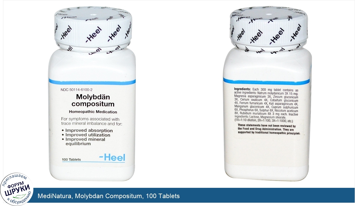 Друзья, если у вас есть отзыв/дополнение/комментарий/вопрос относительно MediNatura, Molybdan Compositum, 100 Tablets - напишите его ответом в эту тему (это будет полезно всему сообществу в целом и вам в отдельности).