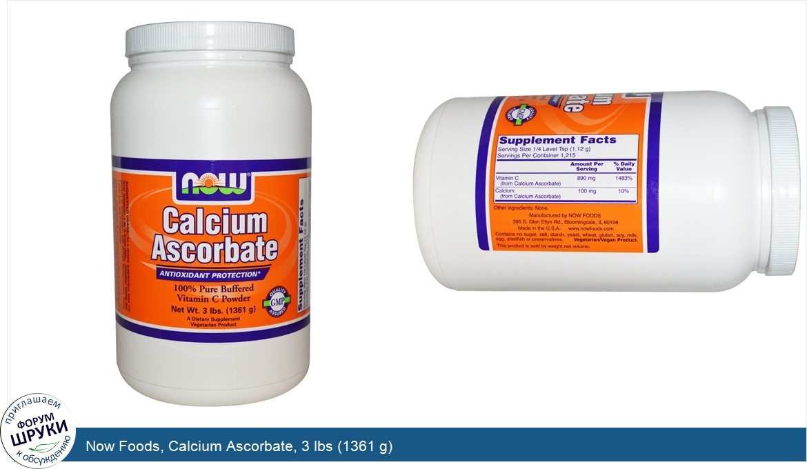 Друзья, если у вас есть отзыв/дополнение/комментарий/вопрос относительно Now Foods, Calcium Ascorbate, 3 lbs (1361 g) - напишите его ответом в эту тему (это будет полезно всему сообществу в целом и вам в отдельности).