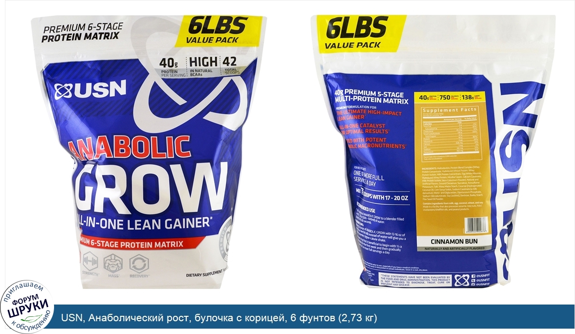 USN, Анаболический рост, булочка с корицей, 6 фунтов (2,73 кг)