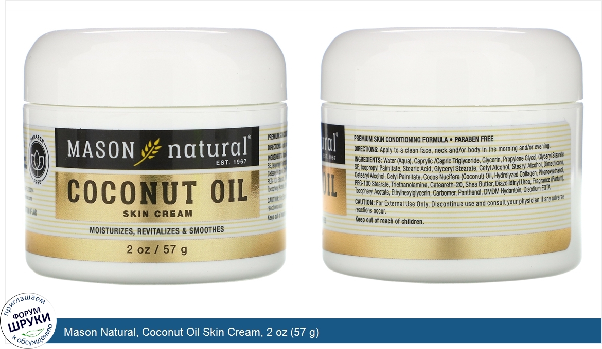 Друзья, если у вас есть отзыв/дополнение/комментарий/вопрос относительно Mason Natural, Coconut Oil Skin Cream, 2 oz (57 g) - напишите его ответом в эту тему (это будет полезно всему сообществу в целом и вам в отдельности).