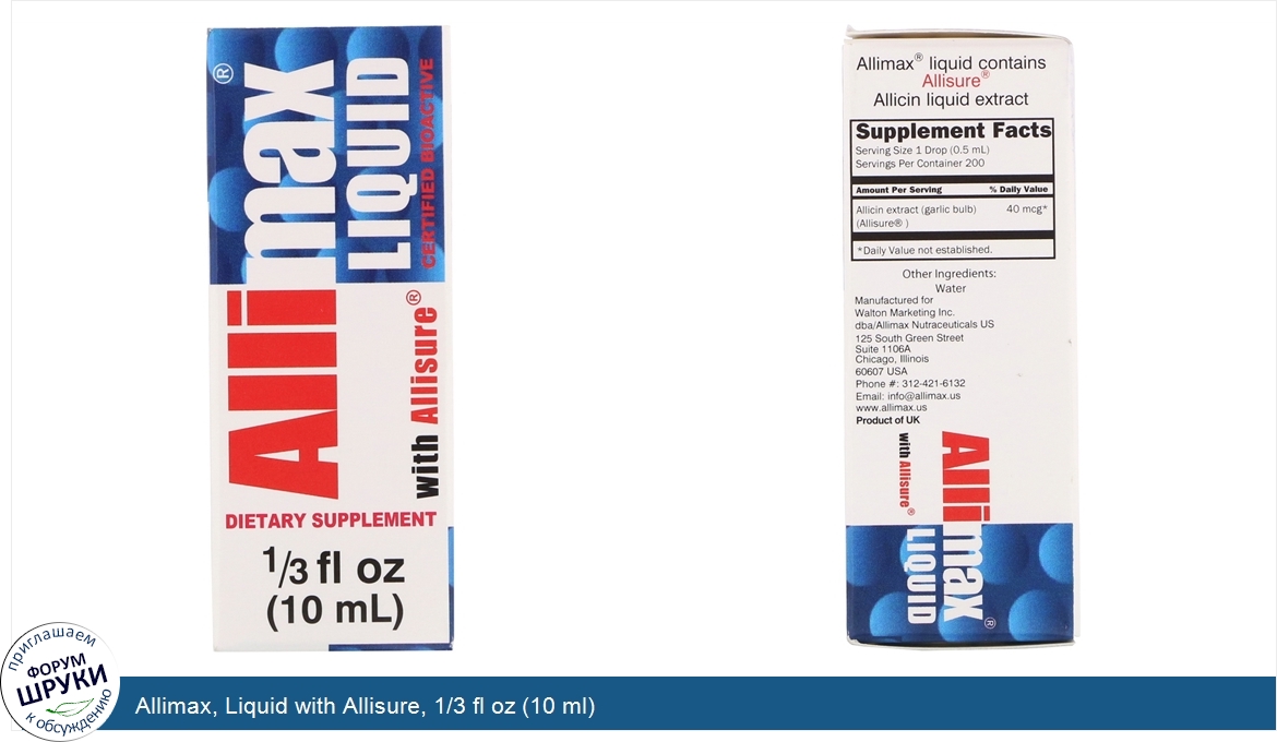 [DESCRIPT]Certified BioActive. Dietary Supplement. Allimax liquid contains Allisure - Allicin liquid extract. Allisure provides the body with a 100% yield of allicin. A patented extraction process produces allicin and locks in all its goodness.[/DESCRIPT]... (описание дополняется)