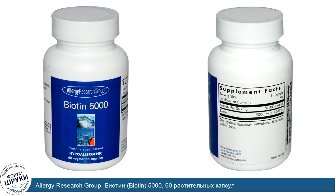 Друзья, если у вас есть отзыв/дополнение/комментарий/вопрос относительно Allergy Research Group, Биотин (Biotin) 5000, 60 растительных капсул - напишите его ответом в эту тему (это будет полезно всему сообществу в целом и вам в отдельности).