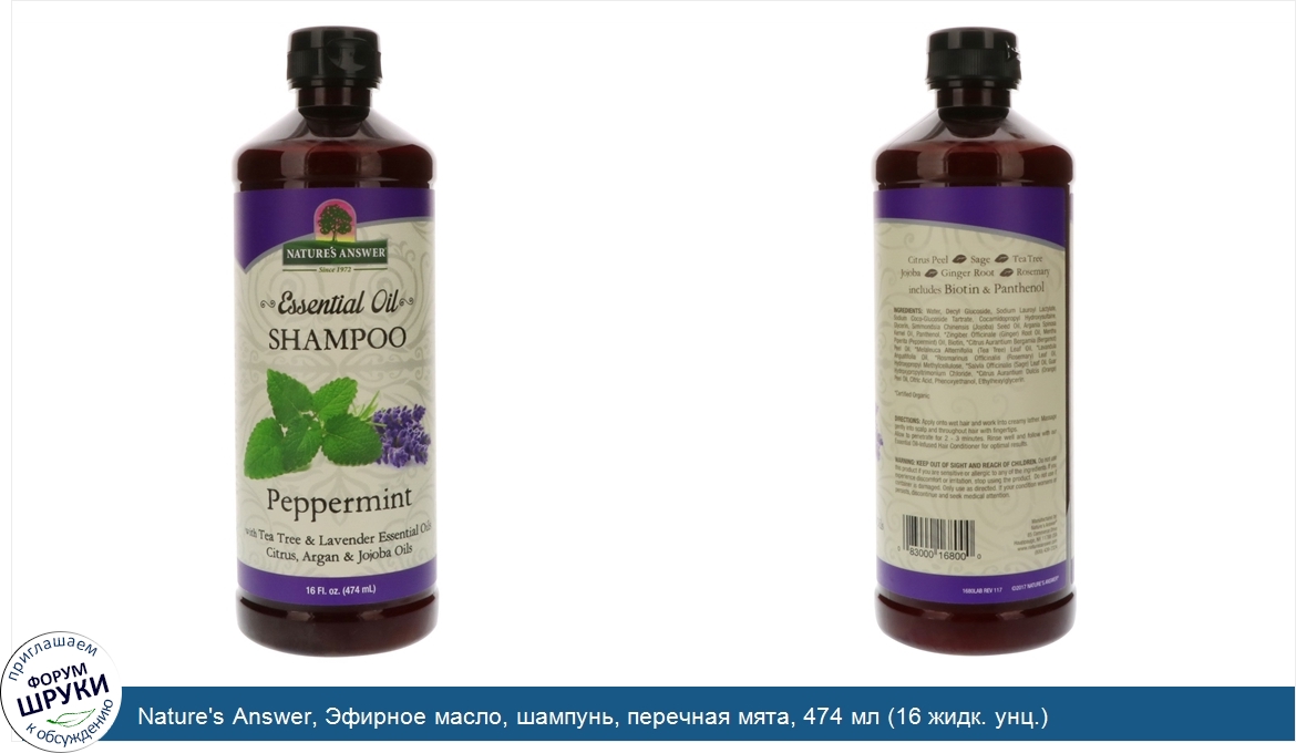 Друзья, если у вас есть отзыв/дополнение/комментарий/вопрос относительно Nature's Answer, Эфирное масло, шампунь, перечная мята, 474 мл (16 жидк. унц.) - напишите его ответом в эту тему (это будет полезно всему сообществу в целом и вам в отдельности).