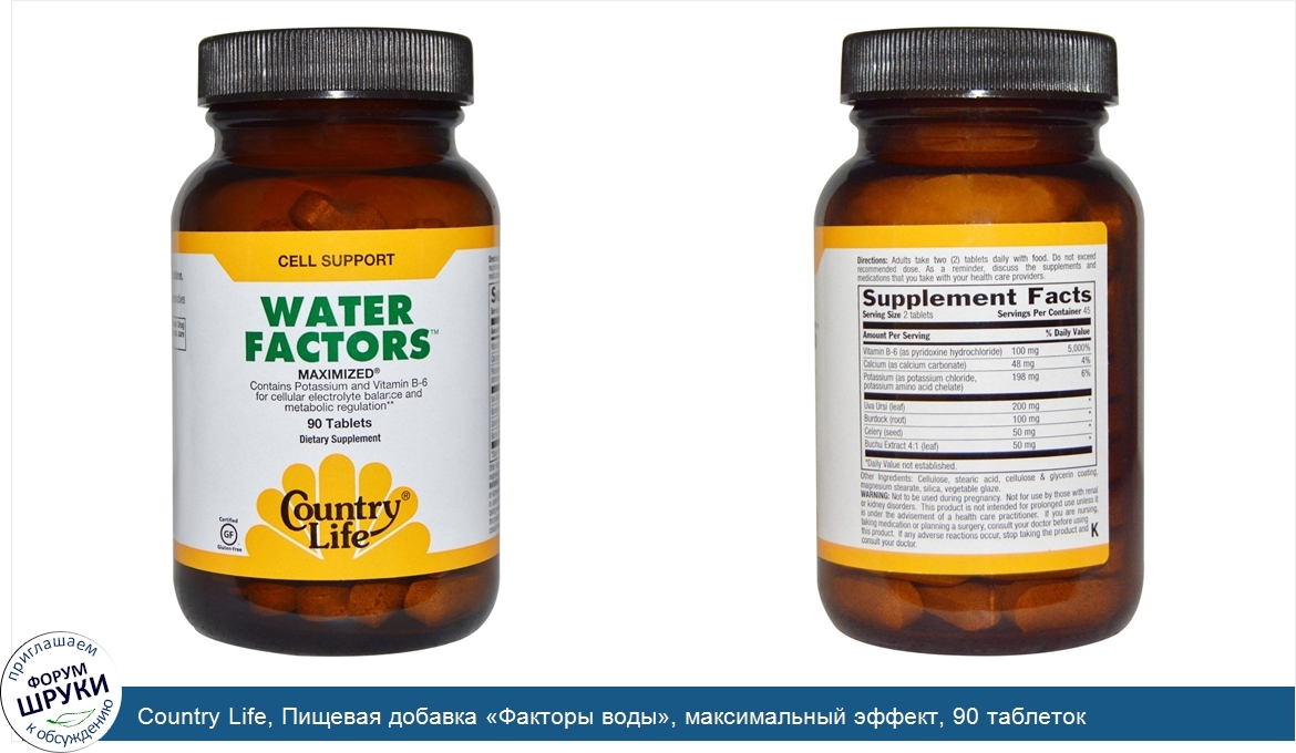 ru Country Life, Пищевая добавка «Факторы воды», максимальный эффект, 90 таблеток