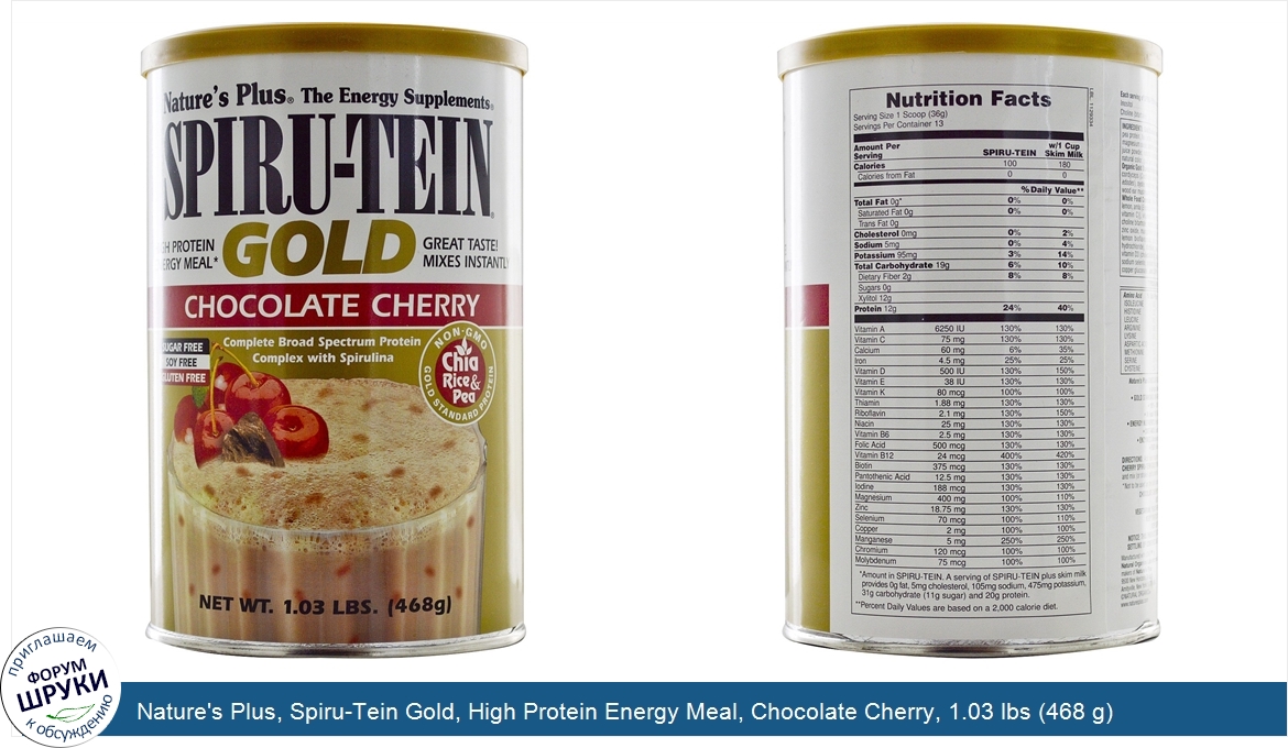 Nature's Plus, Spiru-Tein Gold, High Protein Energy Meal, Chocolate Cherry, 1.03 lbs (468 g)